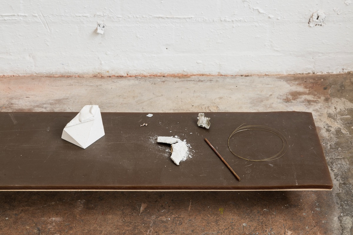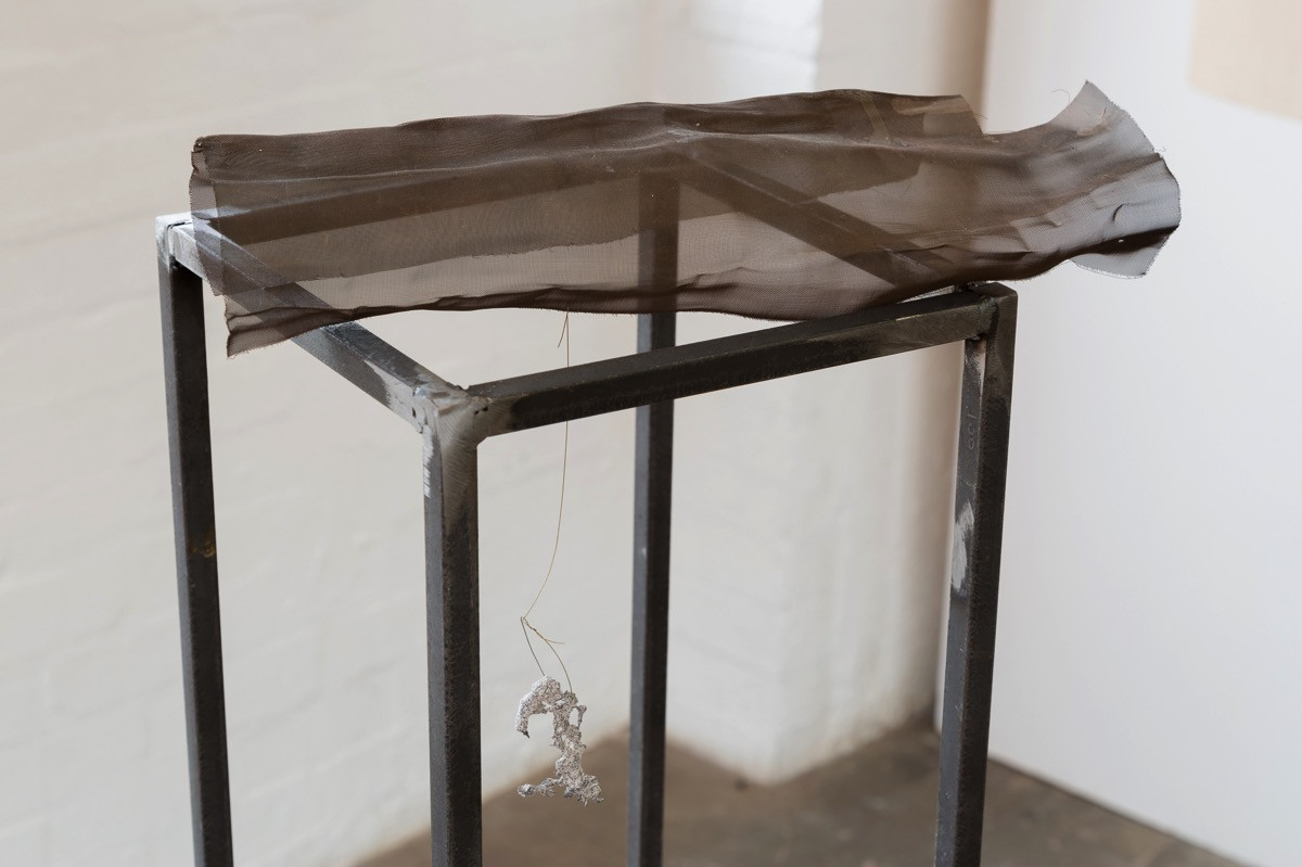 These allegorical histories formed the starting point of this exhibition, which was made as a series of material experiments using steel, cement, paint, bread and more bread, bronze, marble, nylon and glass. The simple act of casting an obdurate material like cement with bread produced a fallible form, fragile and time sensitive.