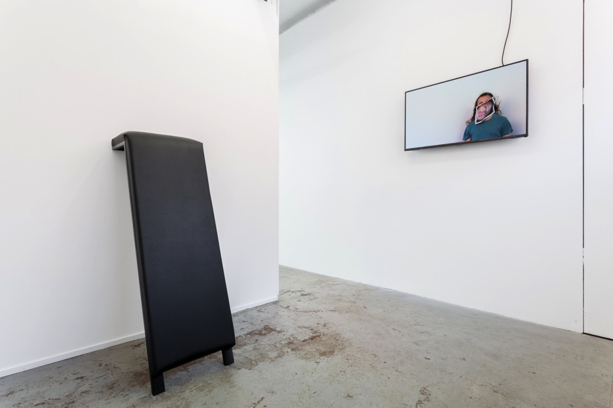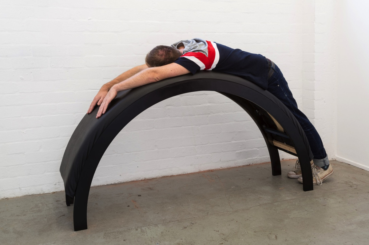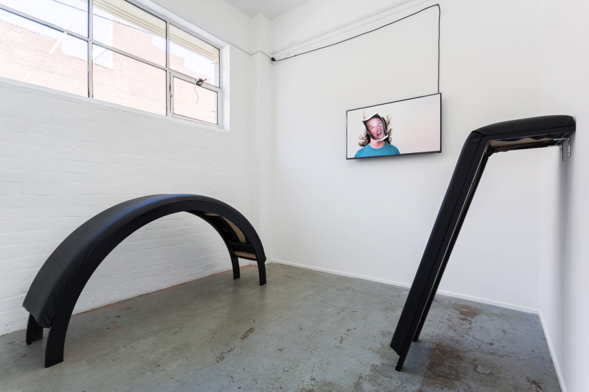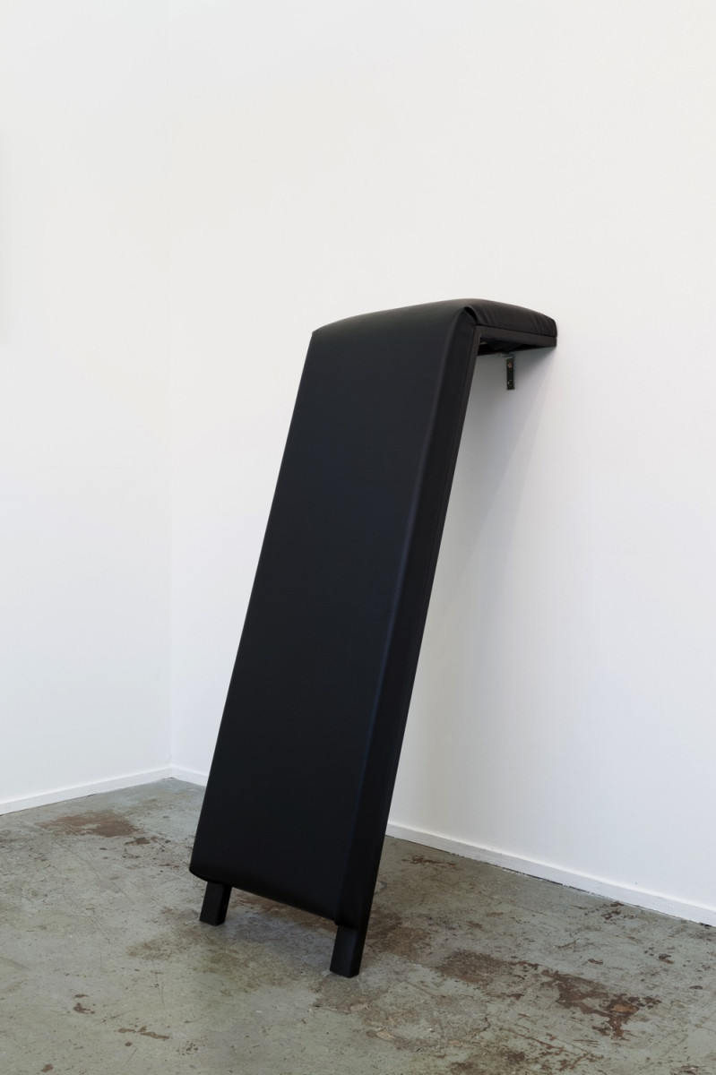 Incorporating sculptural constructions and video based images ‘Gymlazium’ investigates this interaction between viewer and space providing apparatus upon which a bored viewer can embrace their indifference and find something to lean on whilst viewing.