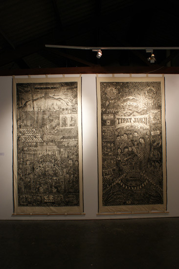 This exhibition comes out of a sense the curators had that there is real momentum locally for critical engagement with the Indonesian contemporary arts scene. In Melbourne, Indonesian student numbers are at their highest. Increasingly too, these students are undertaking study in arts-related disciplines such as fashion, graphic design, architecture and fine arts and are beginning to find a place in the local arts scene. In much the same way there is increased traffic to Indonesia by Australian artists with programs like the Asialink residencies and the successful Sydney-based arts festival Gang program gaining traction within local arts communities. Myriad connections have been established but too much of the traffic is one-way. KOMPILASI gives Melbourne audiences the opportunity to be exposed to the next generation of contemporary Indonesian artists through an exhibition that is not only representative of the scene but enables dialogue and engagement with the artists themselves.