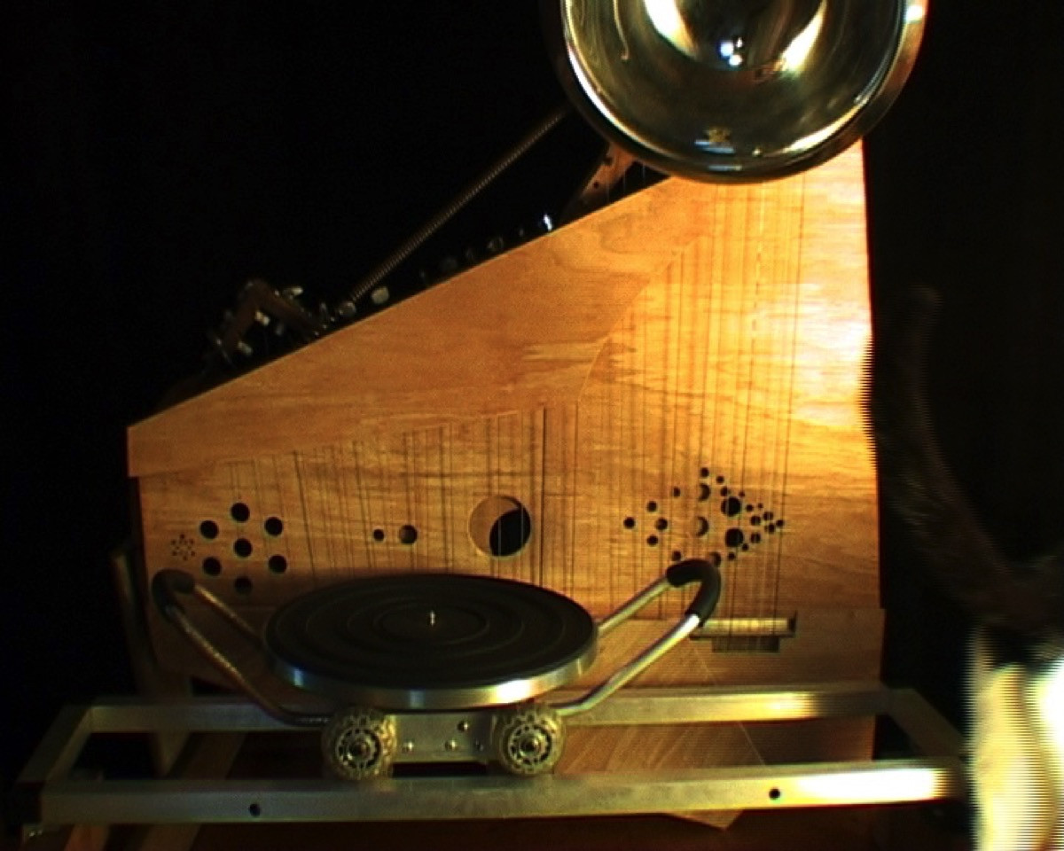 Wood, steel, aluminium, plastic, rollerblade wheels, bicycle bell, air mattress pump, recorder mouth piece, mixing bowl, guitar bodies, biscuit tin, transducer, guitar pickups, ball bearing, egg ring, springs, door knob, music box tines, machine heads, bamboo, brass horn, guitar strings, bass string, violin string, zither strings, piano wire, hose clamps, sticky tape, fabric, LP vinyls.