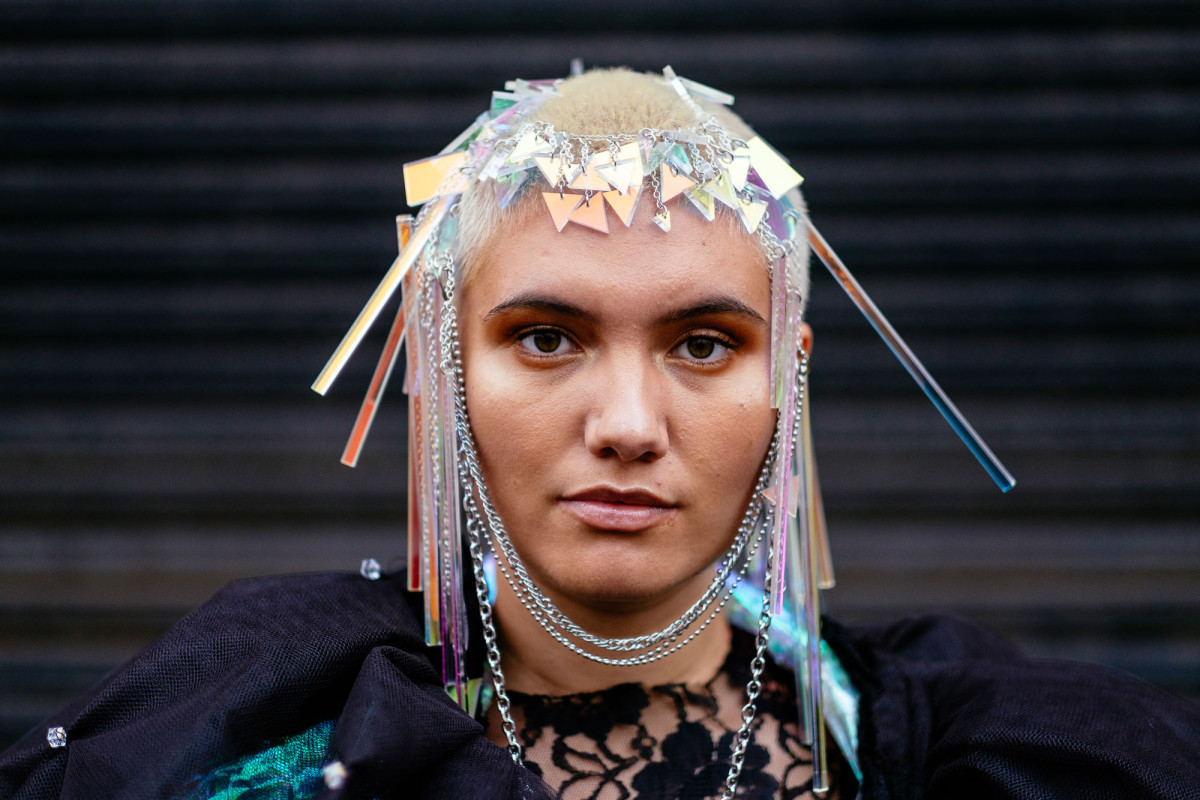Kristy Dickinson is a Wiradjuri designer and self-described Queen of Bling, who has been making jewellery for over 18 years. In 2015 she started her business ‘Haus of Dizzy’ specializing in bright, oversized statement jewellery pieces incorporating elements of female empowerment and pride in her Indigenous heritage. Through her pieces, Kristy shines a light on political, Queer, Indigenous, environmental and feminist issues.