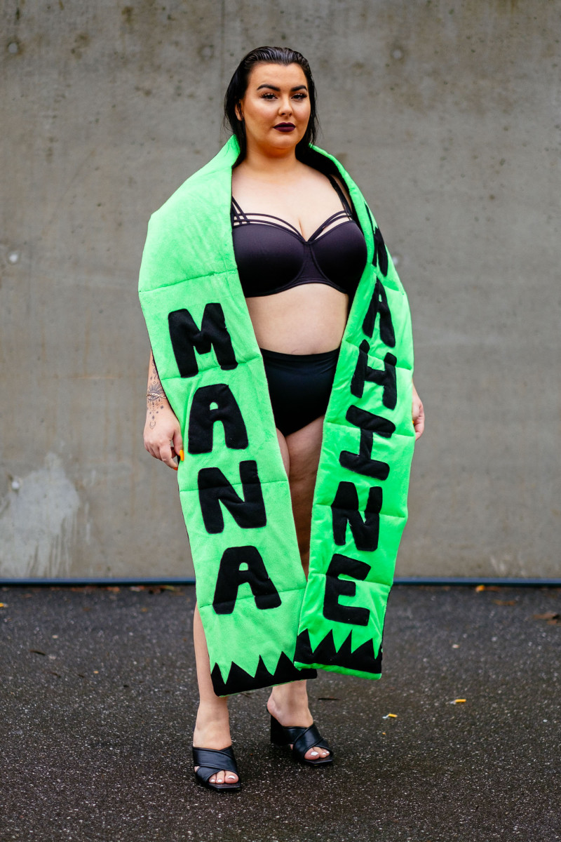‘Yikes…’ writes Rihanna, international fashion icon and musician, ‘I ran out of fucks to give’. It’s this zero-fucks attitude that draws us to her, an unapologetically aggressive yet soulful soundtrack to our art-making. Robyn Rihanna Fenty is known for her fearless high-fashion statements, inclusive make-up brand, bold street wear and mega-sized coats and stoles. Strong Woman, River Woman draws on this aesthetic and combines stories of female figures and ideas from our respective cultures to honour Indigenous matriarchal power.
