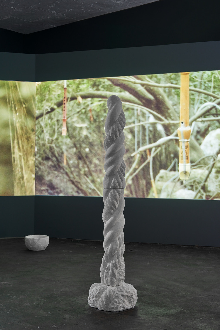 For the exhibition at Bus Projects, Noriko will present a new body of sculptural and video works, alongside Ratman’s large scale video installation, ‘The 588 Project’. ‘The 588 Project’ is an absurd and phantasmagorical exploration of connectivity between the natural and manmade, and depicts a series of heads submerged in mud in a forest. Noriko’s limestone sculptures will be presented in tandem with Ratman’s installation, allowing for a percolation of ideas to brew, submerge and cross-pollinate between each other.
