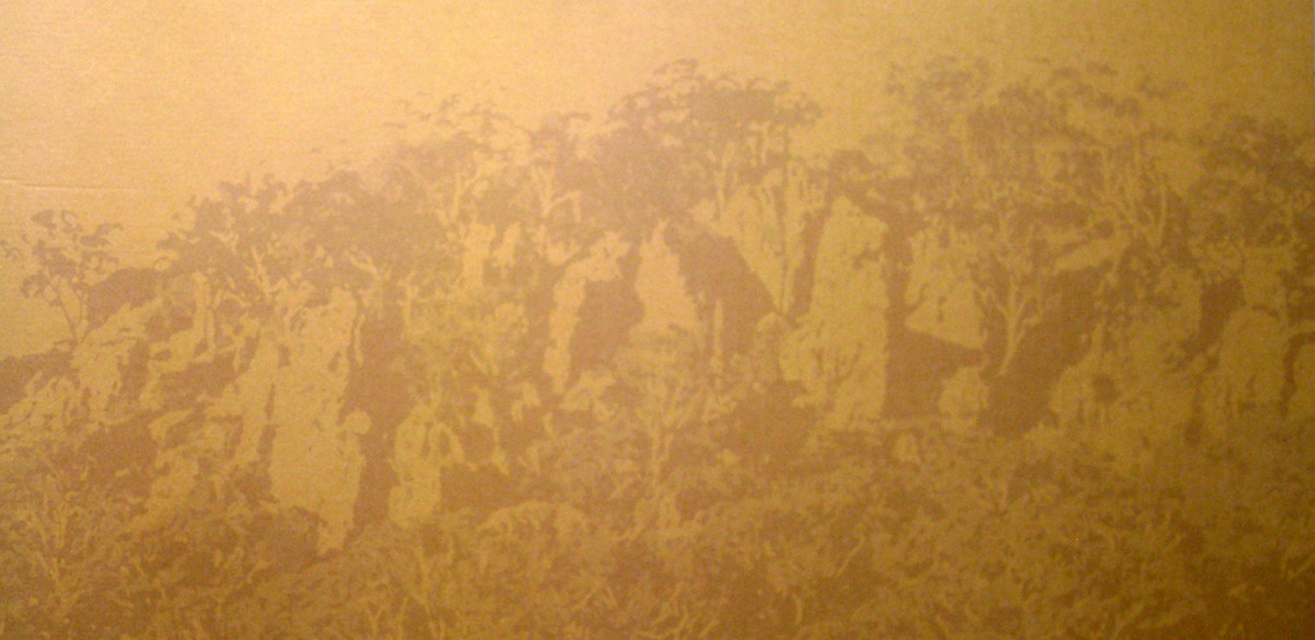 Sean Rafferty and Camille Serisier met in 2005 when they exhibited at the now defunct Wren Gallery in Sydney’s Surrey Hills. From their first meeting they recognised in each other’s work sympathetic areas of investigation, not just in the realm of materiality, but also through a parallel use of space and conceptual subject matter. In ‘Backdrop’, both artists focus on the structure of landscape and theatrical space, and the way landscapes are depicted to satisfy a purpose. For both artists, the representation of the landscape as isolated by the image frame or proscenium arch provides a point of departure to explore their relative ideas. Like the diorama, which exists as a type of three-dimensional still life sans performers, the works in this exhibition will be presented in a pictorial space incorporating the depth of the stage space.