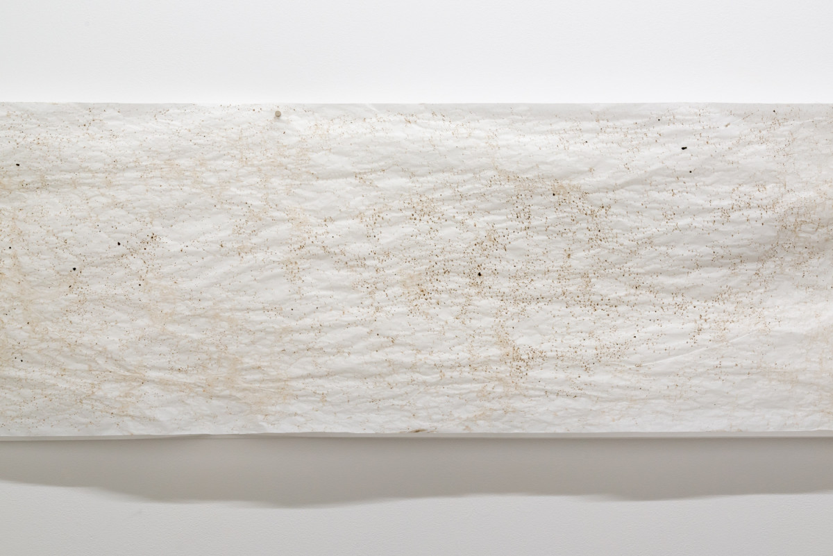 Once inside, the gallery space responds to the presence of visitors through contact microphones and resonant speakers that amplify movement, enveloping participants in a living soundscape. ḡaumaḡauma (act of taming, recognition of the bloodline) is an immersive environment combining installation, soundscape, work on paper, and live performance. It becomes a touch-sensitive experience in which the connection between the body and Melanesian cultural practice and mythology is made tangible.