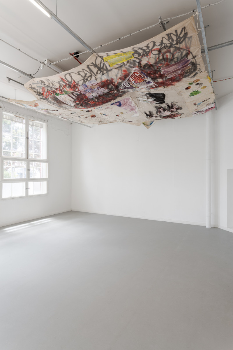 I’m planning to finish the works in the space over summer when the gallery is empty and then stitch them together and rig them up so its hung from the lighting rig to make some kind of mural painting, so something that somewhat imitates kind of permanency (a-la sistine chapel etc) I don’t love that reference but its pretty unavoidable. I guess that if there was that reference or a collage of imagery that’s harmonious only in its exhibition then it can somewhat be a cooked view of ‘heaven/hell” etc but also friezes that fill architecture, like Klimt friezes in universities or bathhouses or even that horrible train station in Oakley LOL. Also that the lighting is covered. I might have lighting from the floor pointing up but thats not confirmed and also tis summer so pretty bright.
