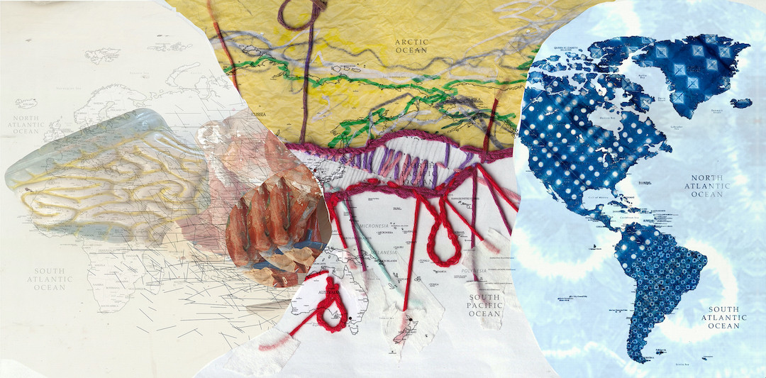 The Mapping Porous Borders Project presents a digital exhibition created collaboratively with artists from every continent of the world. The site will be available for the opening and closing of the Mapping Future Imaginaries Concentric Curriculum. Alys Longley has collaborated with Kate Stevenson of DotDot digital design studios and participating artists to create a bespoke digital platform for visual art exhibition and performance showings that offers a space for sociality, playfulness, choreographic spatiality and interactivity. Through a simple URL, visitors from anywhere in the world can enter this work and discover a labyrinth of maps and landscapes to move through interactively. On the 30 November we will be sharing 14 hours of scheduled live stream experiments, shared in a miniature theatre housed in this digital world, in collaboration with a US-based SloMoCo art residency.