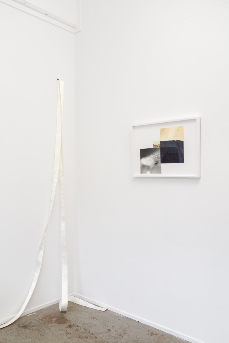 ‘Nettie crotch’ is a continuation of McKenzie’s investigation into collage – collecting and contrasting layers of imagery, both formally and through etymological linguistic association. The works themselves make attempts at the ‘awkwardity’ that she often develops in her video work, and similarly references selections of the artist’s body as an actor within a stage. In this series McKenzie seeks to clasp a moment of confluence of the works’ theatrical elements, as if they were a performance space in a moment of taut choreography. ‘Nettie crotch’ implicates the photograph as scaffold and podium, suggesting the images could be actuated as a set, or to emulate the descent of layered flats onto a stage.