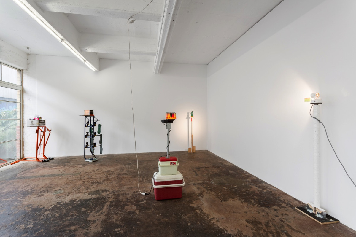 Each of the pieces (containers) in the exhibition use a certain tool as plinth, such as scales and hand trolleys, referencing devices that aid in the movement or comprehension of objects. These items demonstrate their own ‘readiness’ to be transported, inherently mobile by design.
