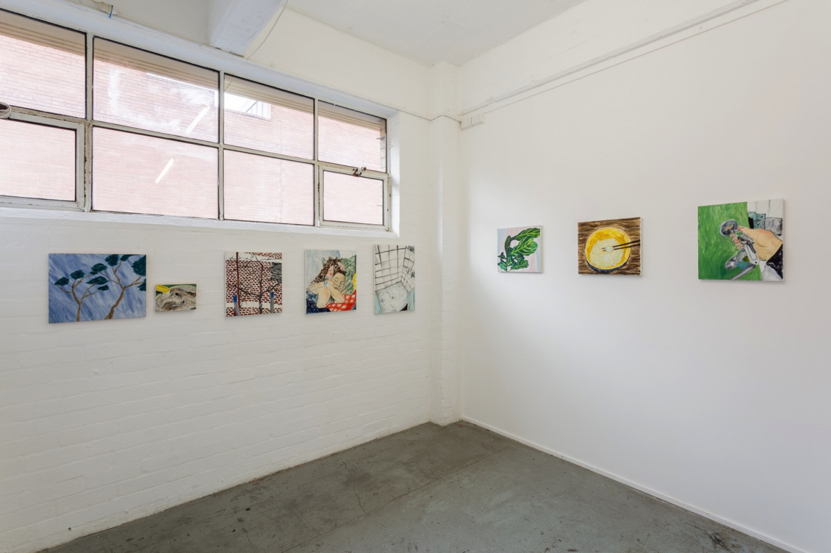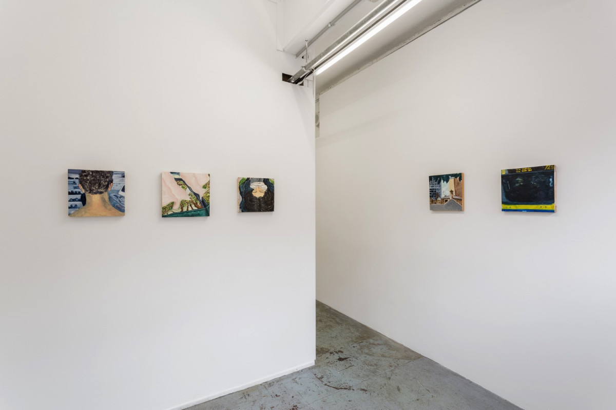 The paintings in “Reminder” are based on photographs from my phone and found images that are reminiscent of past experiences. Each image depicts repetitive daily routines, banal and uneventful moments, the objects and people that are part of my daily life.