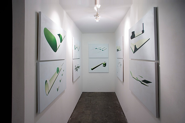 The paintings exhibited in Weapons of Choice explore the idea of competitive play. The title takes its name from computer-game culture, where players select their ‘weapon of choice’ in order to fulfil the predominant objective of game play to win the game at all costs.