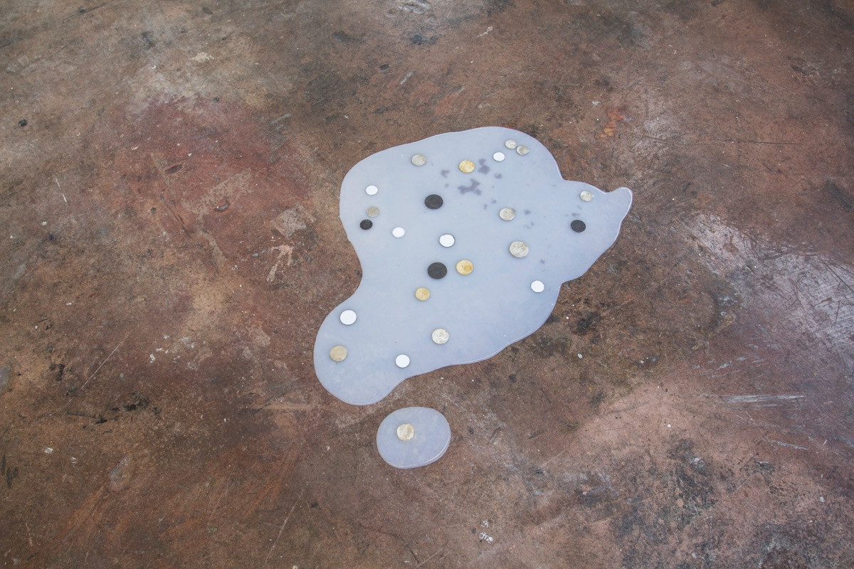 For the exhibition, coins have been stolen from friends and strangers and defaced (embellished), doubly inflected by the melodrama of delinquency. Yesterday, stepping onto a broken escalator I was reminded of the odd disconnect between expectations and the body’s inertia. Like the way coins feel lighter somehow once they’ve lost their symbolic value.