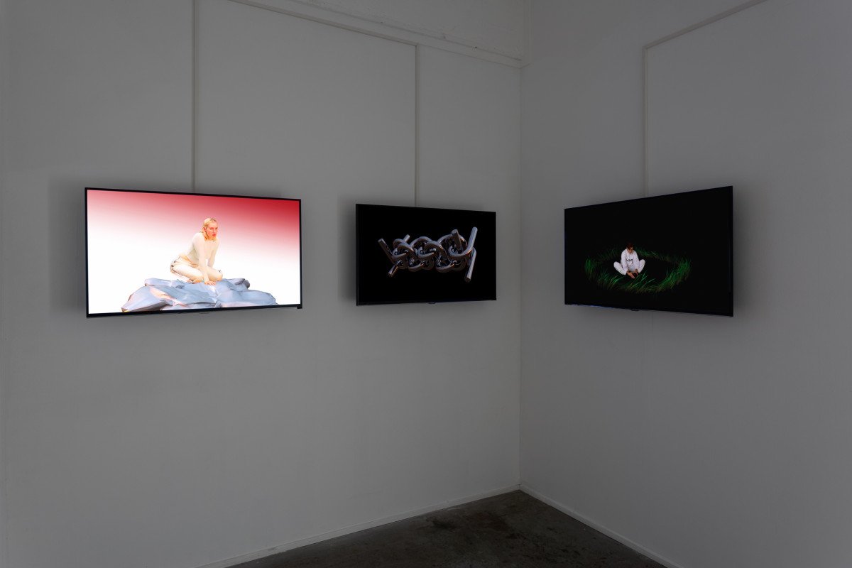 The exhibition investigates the potential for queer subjectivity and atypical modes of desire to be explored as virtual centres of power. Munoz describes a queer aesthetic as having the capacity to map a forward-dawning futurity and to carve paths of potentiality. The installation syncs the embodied with the simulated and considers modes of existing and desiring that splinter from the norm. A flesh that flows, a sound that fucks, a platonic hard on. Manifestations and delusions. It looks towards a subtle body politic and mindful contemplation where queerness can reveal utopian ideals.